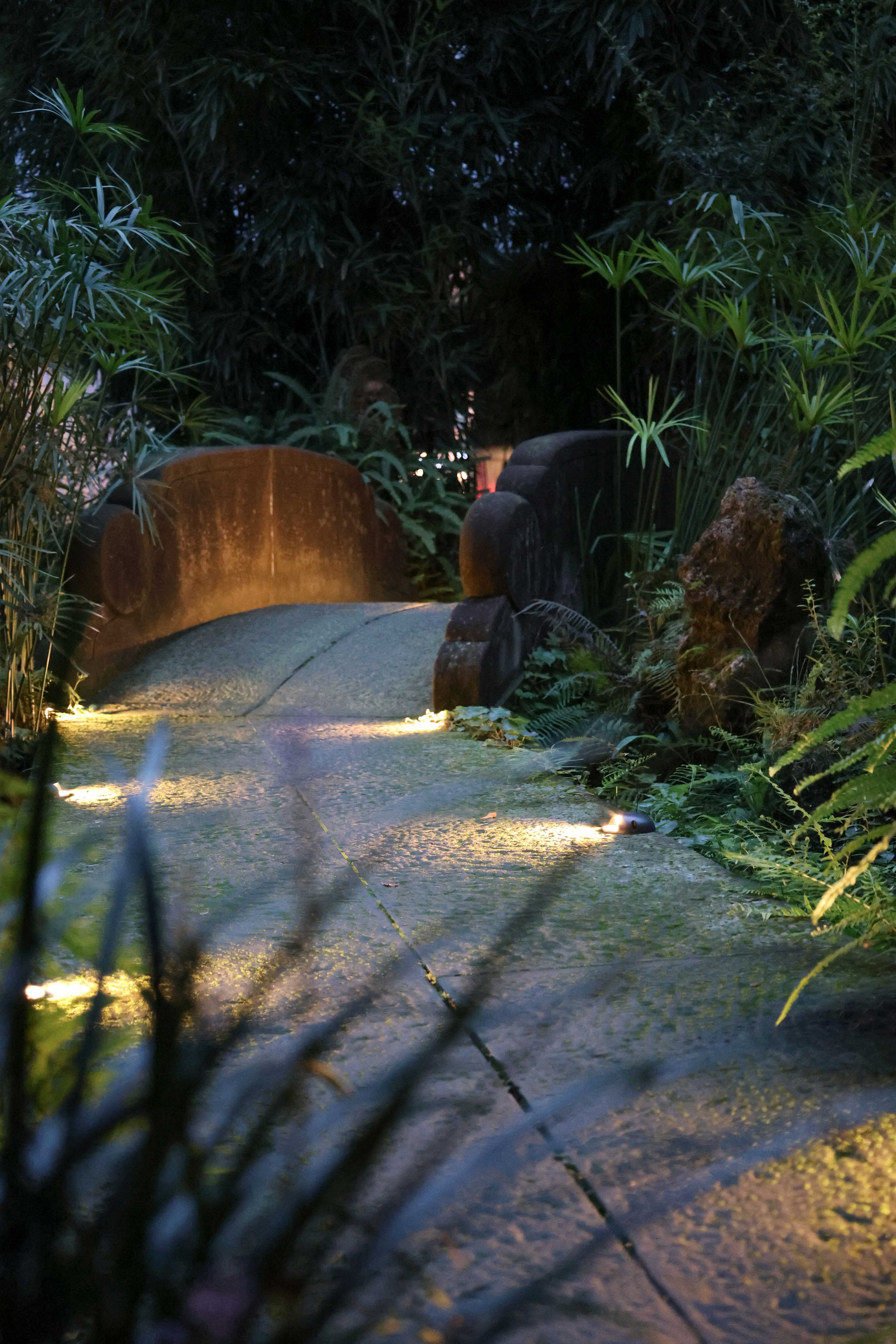 澄园的景观庭院照明设计,秉承传统园林的意境,以光影交织的方式为庭院增添诗意的夜景。通过精心布置的灯光点缀亭台楼阁、廊桥和山石水景,设计师巧妙地运用柔和的光线与细腻的阴影,塑造出一个既宁静又富有层次的夜间空间。夜幕降临时,澄园的庭院仿佛变成了一幅生动的水墨画,传统的园林景观与现代照明技术相融合,赋予了这个历史悠久的庭院全新的生命力与魅力,给每一位走进此地的宾客带来静谧与诗意的体验。